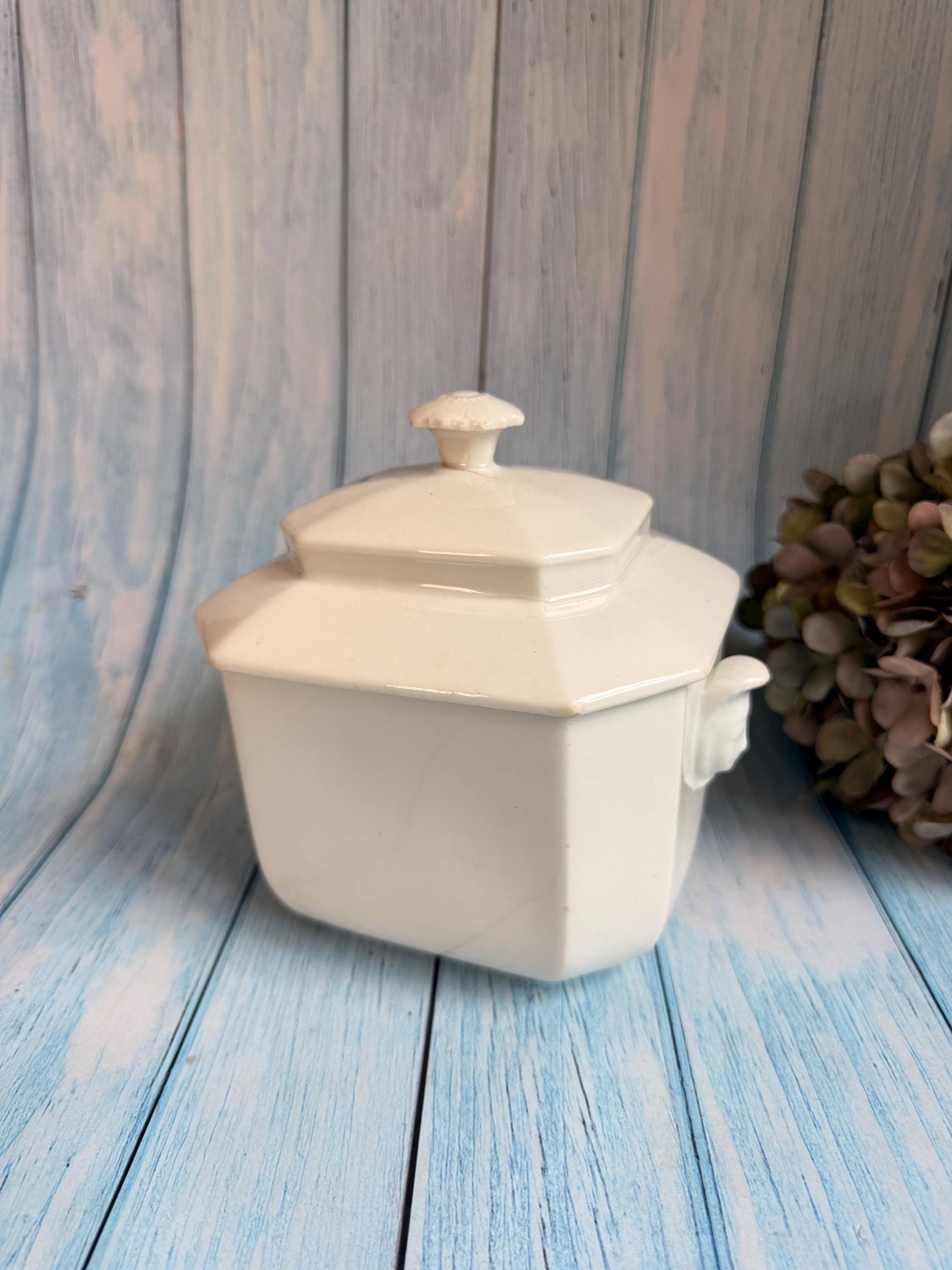 Very collectible circa 1900 antique French sugar pot with cameo head handle details and stylised flower knob to the lid, made from porcelain