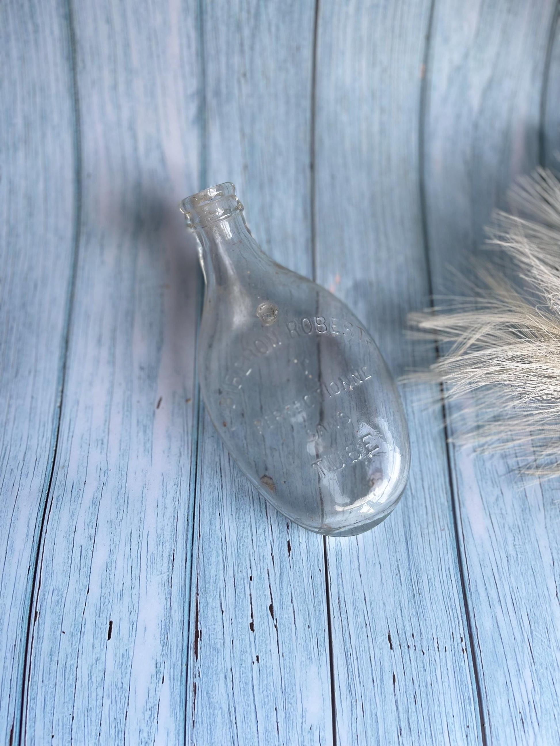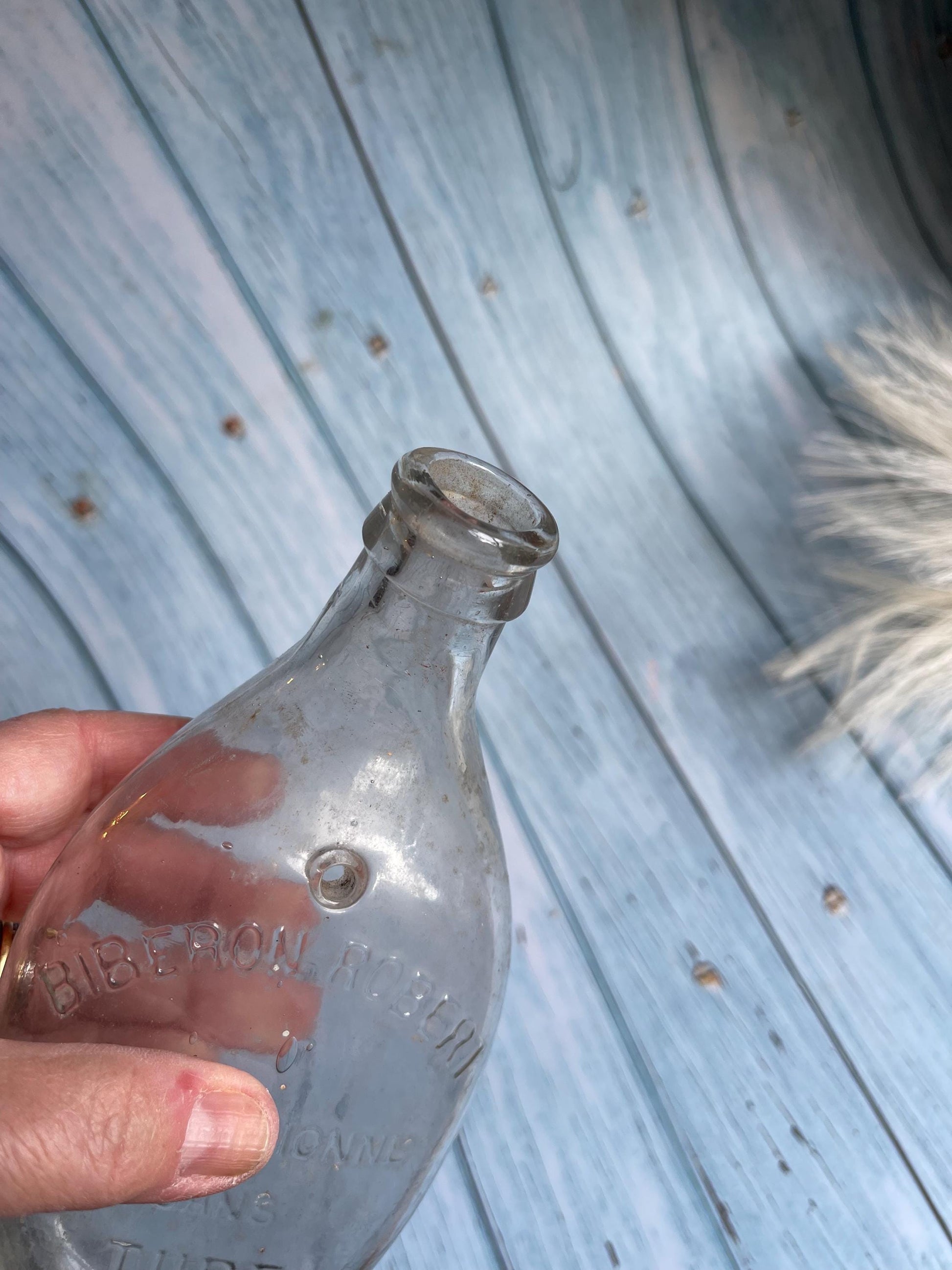 Glass baby bottle in, embossed “Biberon Robert Perfectionne Sans Tube”.