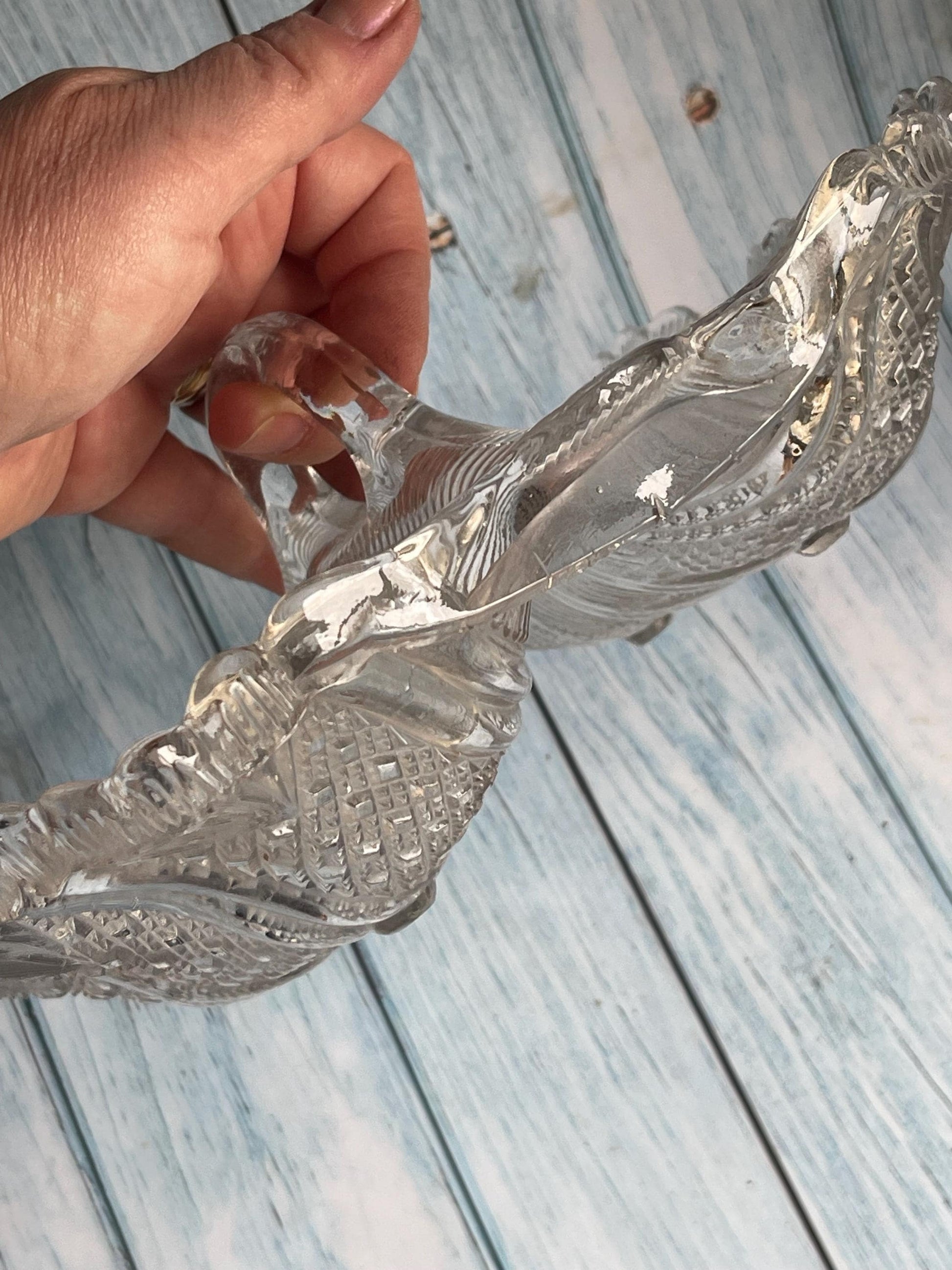 This stunning Victorian-era Davidson glass sweetmeat dish is a beautiful example of antique pressed glass craftsmanship. Featuring two sections and a central handle, this elegant dish was designed for serving sweet treats, nuts, or bonbons in true Victorian style.