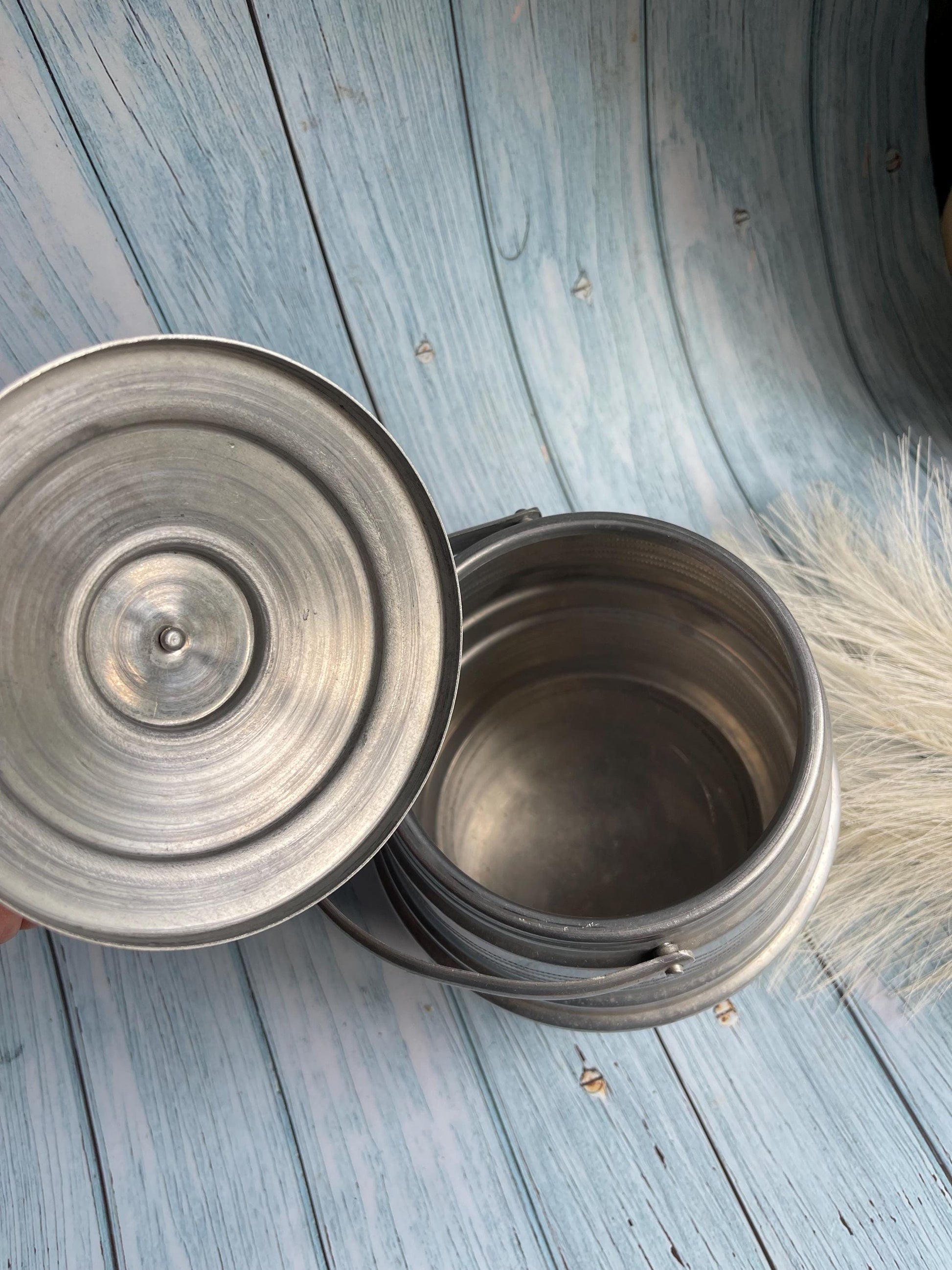Art Deco Aluminium Silver Metal Ice Bucket or Biscuit Barrel with Celluloid Handle