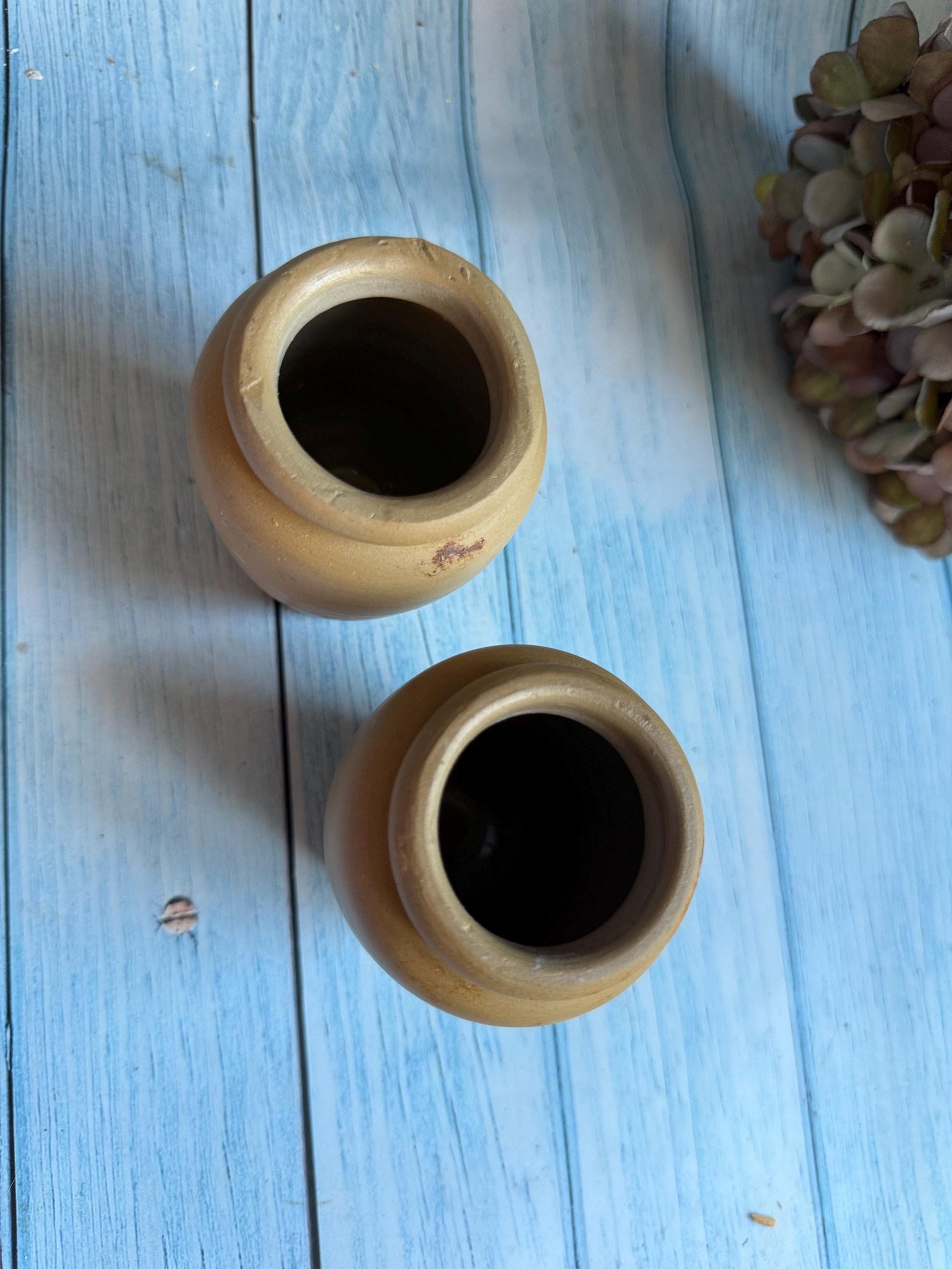 Vintage and charming, these antique stoneware pots are a must-have for any artist, collector, or lover of all things antique. They make lovely little vase or brush pots