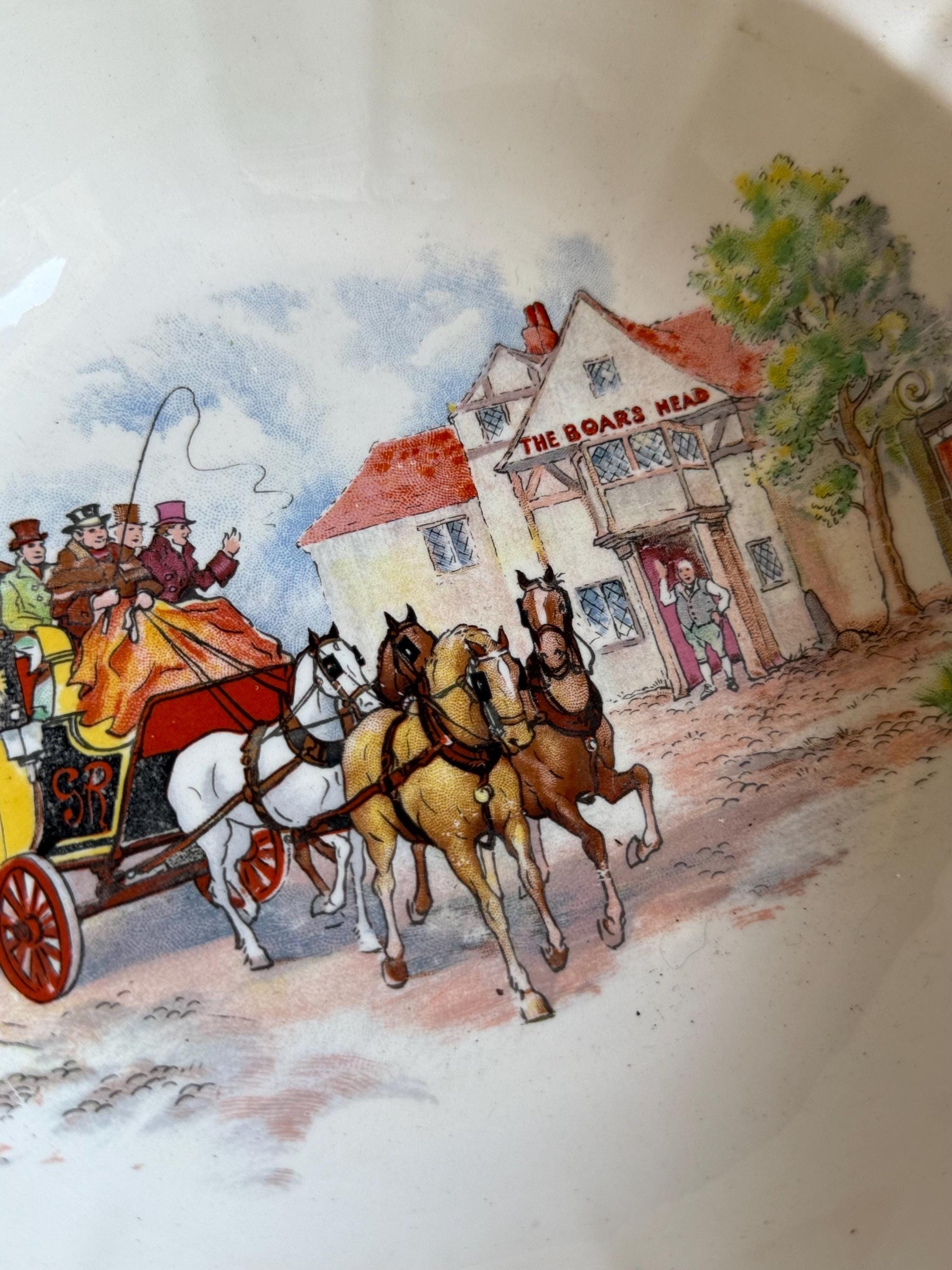 Large serving bowl by Staffordshire pottery Swinnertons, the design is Coaching Days