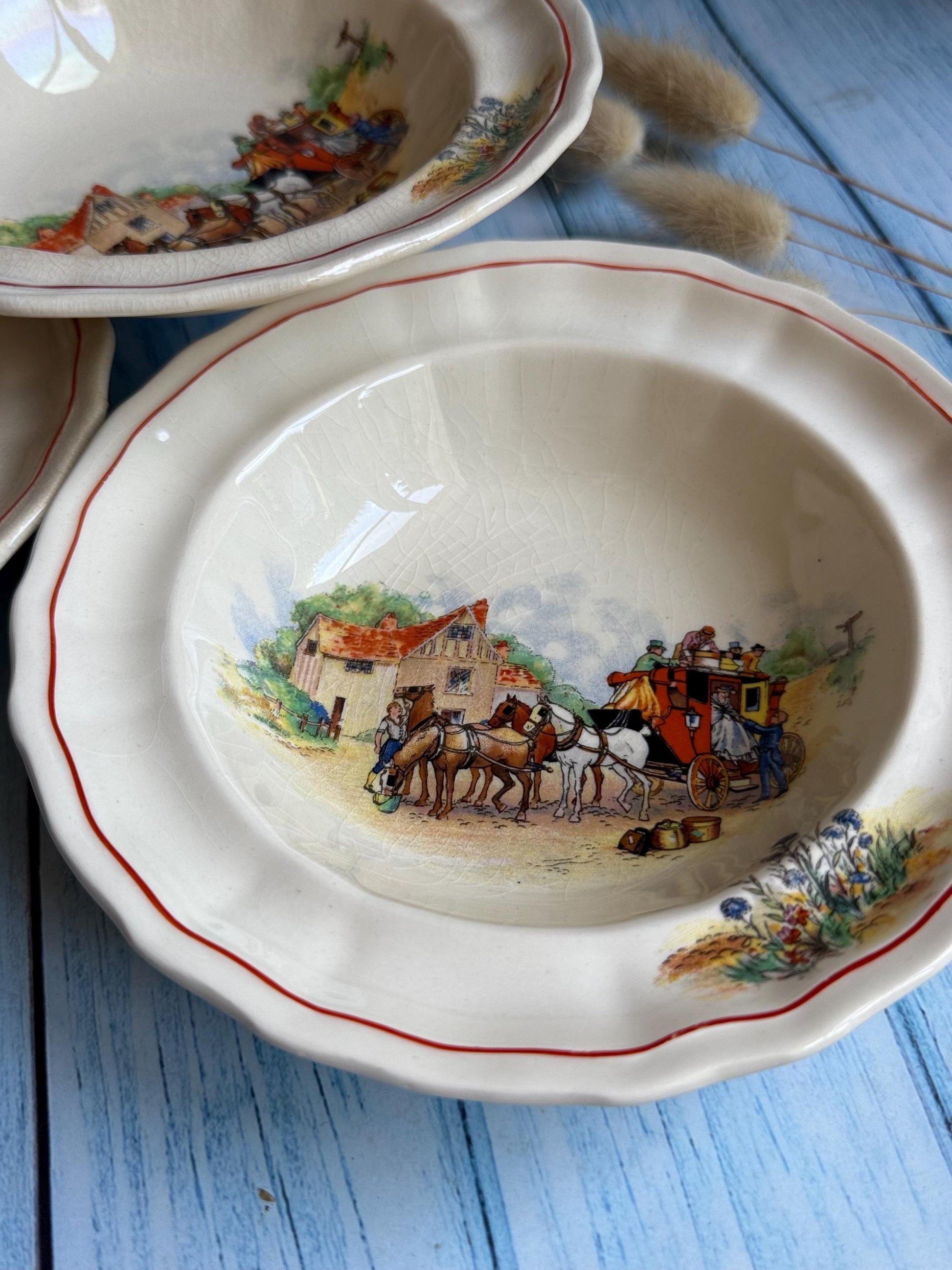 Set of six bowls by Staffordshire pottery Swinnertons, the design is Coaching Days