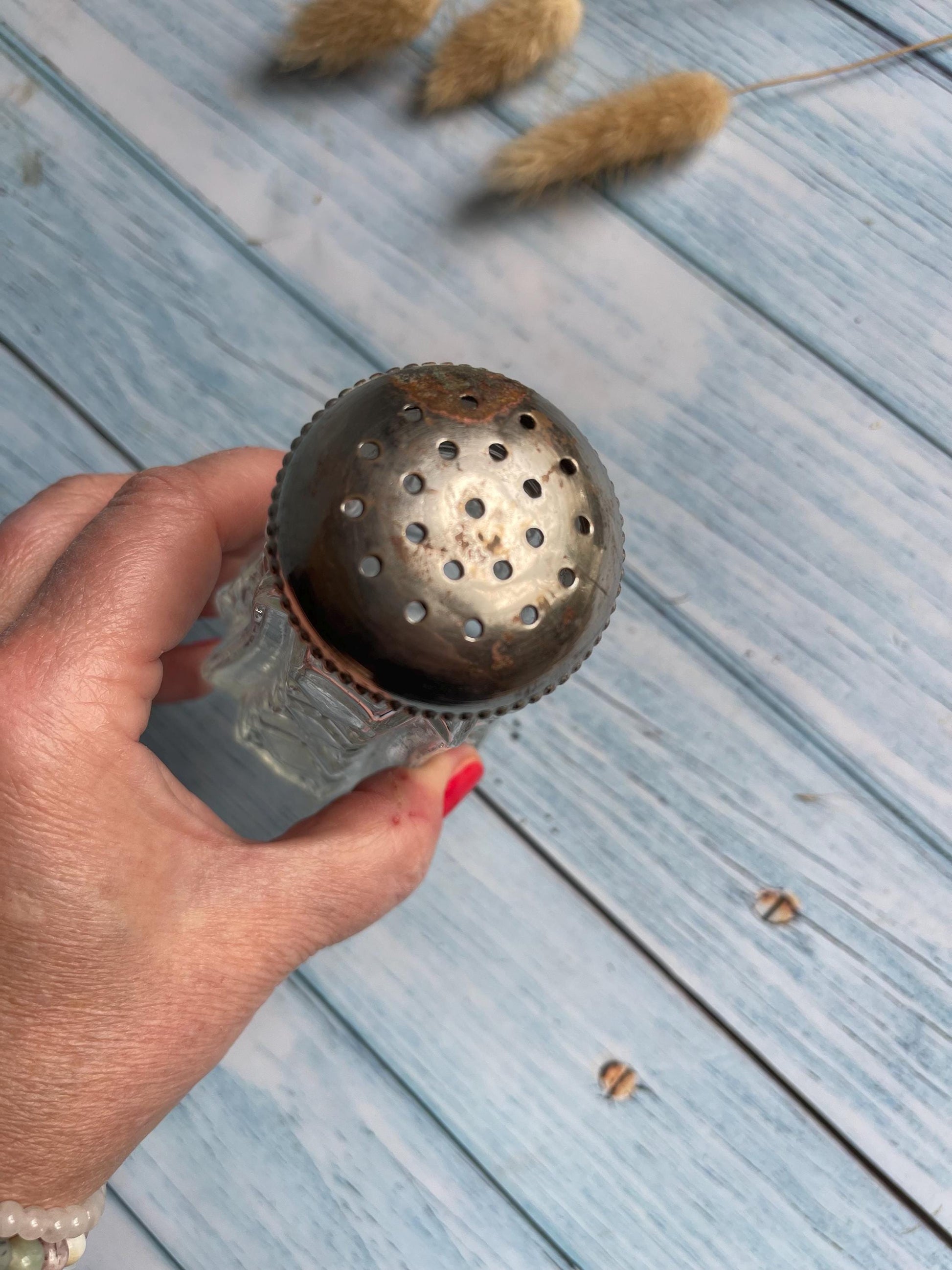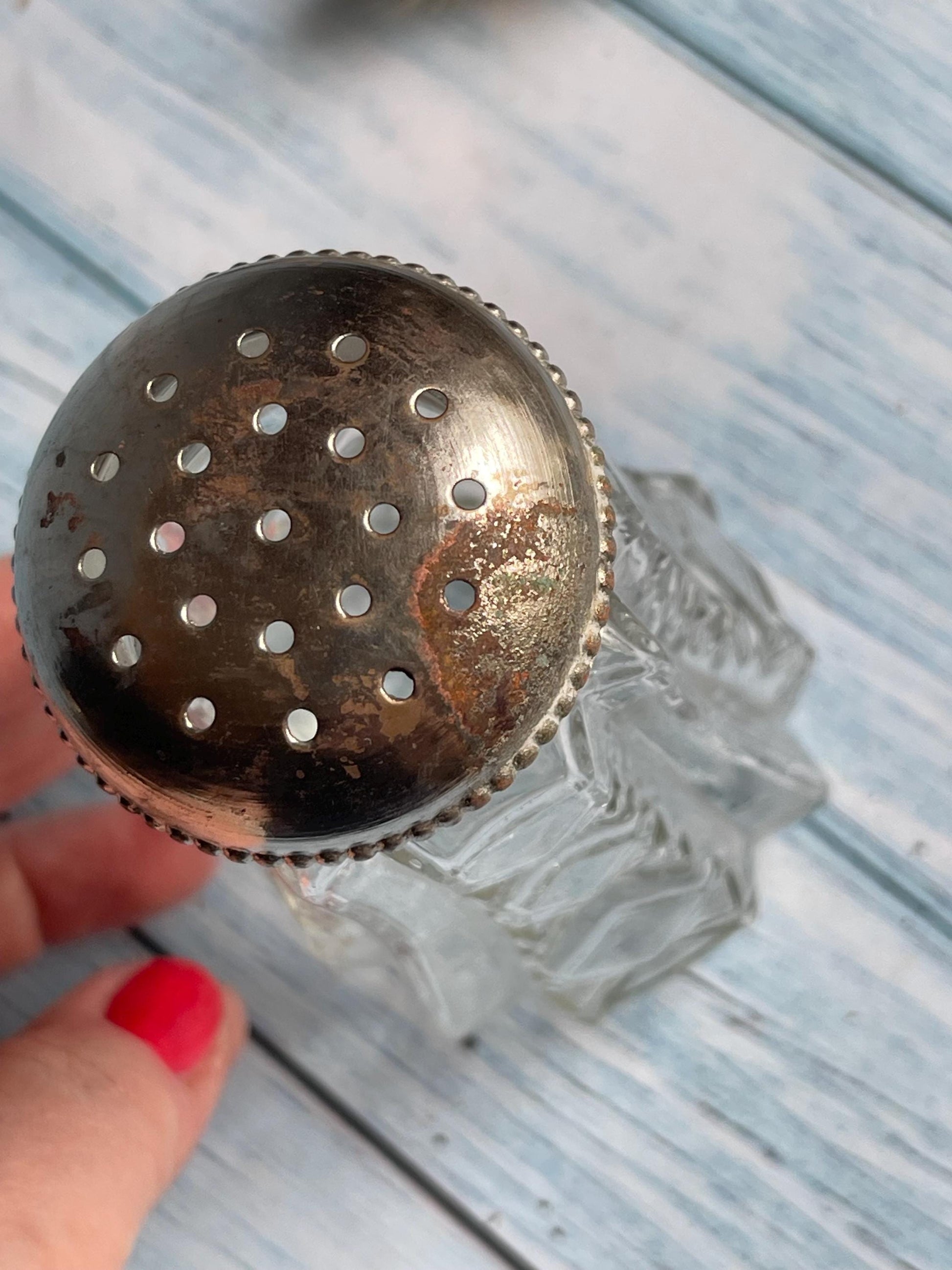 ✨ Lid: Screw-on silver metal lid with natural tarnishing and some rust (as pictured), adding to its vintage character.