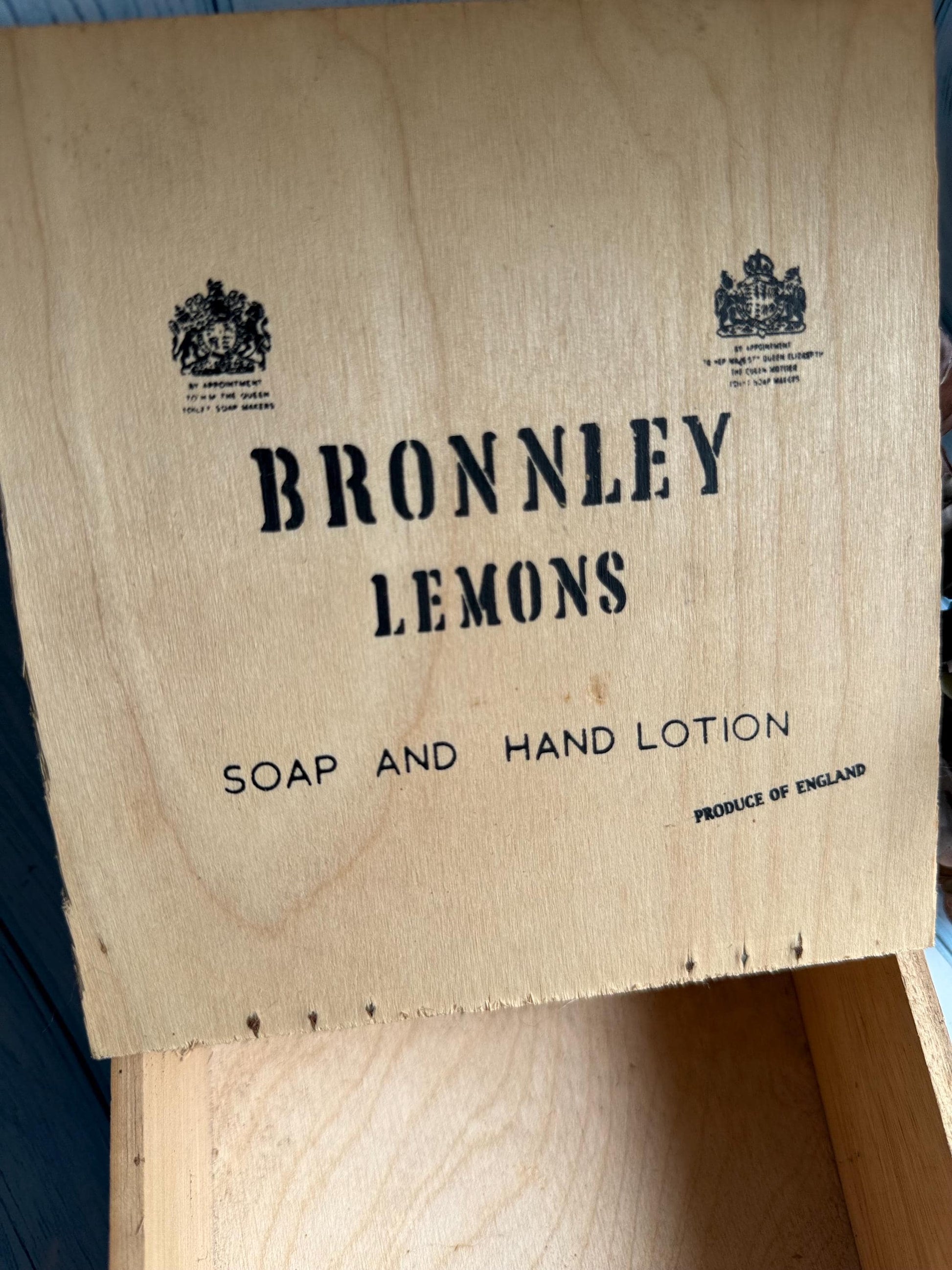 Vintage Bronnley Lemons Wooden Soap Box / Advertising Hinged Storage Box